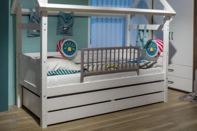 Mit dem Bettgitter Lea von Fillikid genießt der Nachwuchs im Jugendbett die gleiche Sicherheit wie im Gitterbett. Das praktische Accessoire schützt ihn vor dem Herausfallen und macht das Bett noch behaglicher und gemütlicher. Bettgitter von Fillikid inkl. Befestigungsgurten 45(L9 x 100(B) x 2(T) cm massives Buchenholz hergestellt in der EU Durch die Höhe von 45 Zentimeter kann das Gitter in Kombination mit den meisten marktüblichen Matratzen verwendet werden. Es ist einen Meter lang und lässt sich mit praktischen Gurten am Lattenrost befestigen. So wird aus einem normalen Bett mit wenigen Handgriffen ein sicheres Kinderbett, das aktive Träumer vor dem Herausfallen schützt. Dank der Qualität aus massivem Buchenholz und der stabilen Verarbeitung bietet das Bettgitter eine lange Nutzungsdauer.
