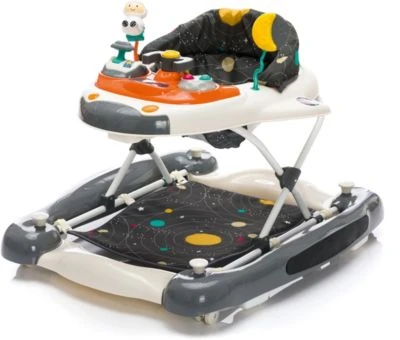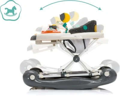 Laufen lernen auf spielerische Art – das Lauflerngerät SPACE mit Schaukelfunktion von fillikid fördert und unterstützt die motorischen Fähigkeiten und den Bewegungsdrang Ihres Kindes. Dieses Lauflerngerät bietet gleich 2 praktische Funktionen in einem. Man kann es für die Kleineren als Wippe verwenden, und wenn Ihr Kind anfängt das Laufen zu lernen, kann man es einfach in einen Lauflernwagen umfunktionieren. Die Licht- und Soundeffekte des Spielbrettes motivieren Ihr Kind weiter zu laufen und sorgt zusätzlich für Unterhaltung. Mit den um 360° drehbaren Vorderrädern ist beinahe jeder Untergrund kinderleicht zu bewältigen. Die Sicherheitsstopper sorgen dafür, dass Ihr Kind bei einer offenen Treppe nicht hinunterfallen kann. Durch die 3-fach verstellbare Höhe passt sich das Lauflerngerät praktisch an die Größe Ihres Kindes an. Sollte das Lauflerngerät mal nicht in Verwendung sein, kann man es einfach und klein zusammenlegen und leicht verstauen.