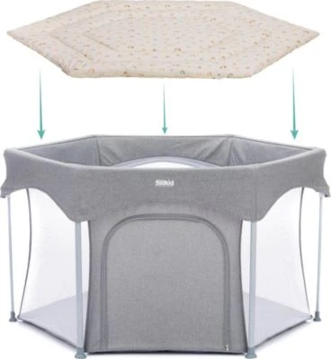 Für die ersten Krabbelversuche und schöne Spielmomente kommt mit dieser weich gepolsterten Laufstalleinlage ein prima Alltagsbegleiter für die Kleinsten. Die 6-eckige und weich gepolsterte Einlage kann auch außerhalb des Laufstalls als Unterlagen zum Spielen und Kuscheln genutzt werden und verhindert, dass es von unten zu kalte wird. Im Laufstall ist die Einlage ein weicher Schutz, der auch die ersten Steh- und Gehversuche unterstützt.