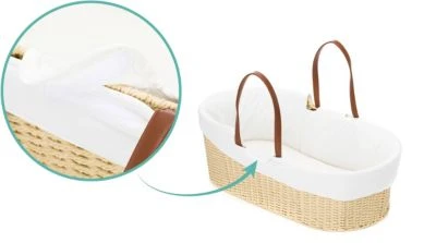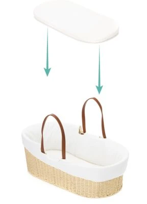Der Moseskorb von Fillikid punktet mit einer komfortablen Matratze mit abnehm- und waschbarem Baumwoll-Bezug. Das schlichte Design mit traditioneller Korbflechtung und Tragegriffen aus Lederimitat ist dabei zeitlos modern. Lieferumfang: Moseskorb mit Matratze, Matratzenbezug, Korbbezug, Tragehenkel Material: Korb aus Korbpapier und Metall, Bezug und Bezugsstoff der Materatze aus reiner Baumwolle, Matratzenfüllung aus Polyester, Tragegriffe aus Lederimitat Verwendung: Babybett (ab Geburt), als Stubenwagen oder Schaukelwiegenersatz (mit separat erhältlichem Schaukelgestell) Belastbarkeit: bis 9 kg Maße: 86(L) x 45(B) x 31(H) cm Der Moseskorb von Fillikid bietet Kindern ab der Geburt ein Geborgenheitsgefühl: Insbesondere in der ersten Zeit nach der Geburt wirkt der begrenzte Raum beruhigend auf den Nachwuchs. Dank der komfortablen Matratze mit natürlichem Baumwoll-Bezug können sich die Kleinen hier den ganzen Tag lang wohlfühlen. Muss das Polster einmal gewaschen werden, lässt es sich einfach an den seitlichen Klettverschlüssen lösen und herausnehmen. Der Bezug ist abnehm- und waschbar. Der Korb wurde in traditioneller Korbbauweise gefertigt und besteht aus einem Metallgestell und reißfestem Korbpapier. Die kontrastfarbenen Tragegriffe sind aus stabilem Lederimitat gefertigt. Der Korb und die Griffe halten einer Belastung von bis zu neun Kilogramm stand. Das schlichte und zeitlose Design fügt sich in jedes Interieur ein und lässt sich leicht kombinieren. Tipp: Mit dem passenden und separat zu erwerbenden Gestell wird der Korb unkompliziert zu einem Stubenwagen oder einer Schaukelwiege.